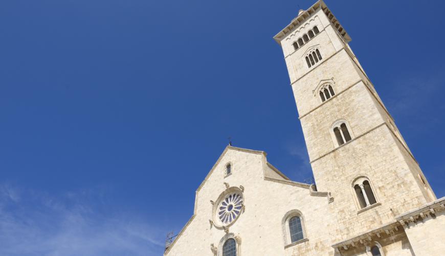 Trani is about 85 kilometers far from Polignano a Mare. It’s well known for its artistic and architectural beauties, which call back a glorious past. The Cathedral is the most prestigious building of the town: is an example of Puglia’s Romanic architecture. Was built using calcareous stone, typical of that geographic area: is Trani’s stone, dig from the city quarry, characterized by a very light pink color.